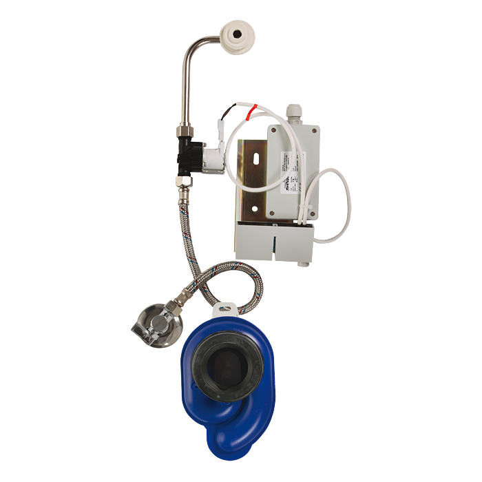 SLP 36RB - Supply No. 11367 - radar flushing unit including Bluetooth module on the mounting rail, electromagnetic valve, connecting hoses, angle valve with filter and check valve, inlet fitting with a rubber sealing, siphon, drill template, 4 pcs. AA alkaline batteries 1,5 V, 2700 mAh with battery case