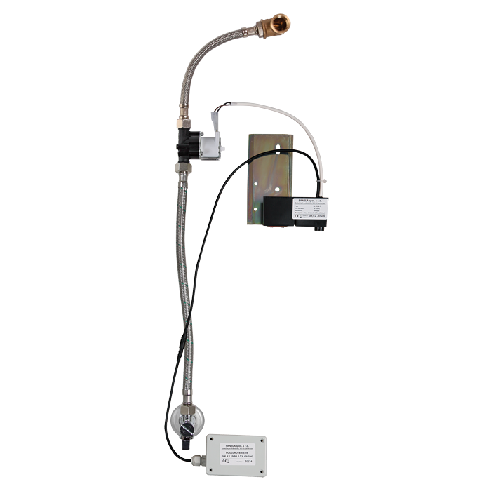 SLP 54RB - Supply No. 01541 - radar flushing unit including Bluetooth module on the mounting rail, electromagnetic valve, connecting hoses, angle valve with filter and check valve, inlet fitting with a rubber sealing, paper drill template, 4 pcs. AA alkaline batteries 1,5 V, 2700 mAh with battery case