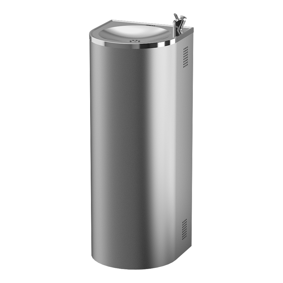 - stainless steel floor standing drinking fountain with self closing drinking spout and cooler
