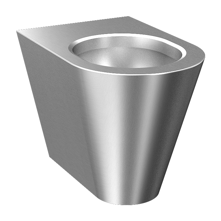 - stainless steel floor standing toilet, fixed to the wall and floor