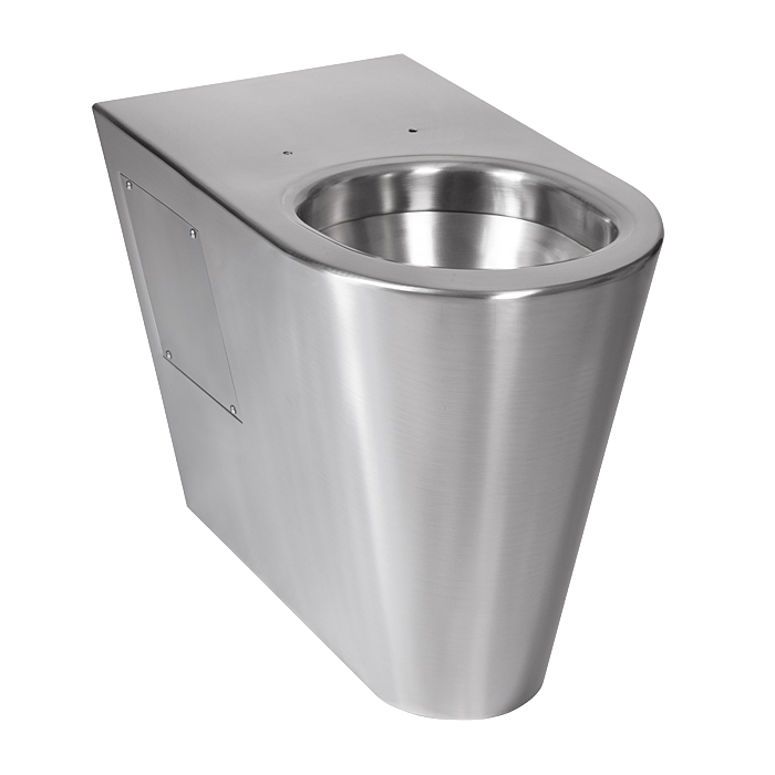 - stainless steel floor standing toilet, fixed to the wall and floor