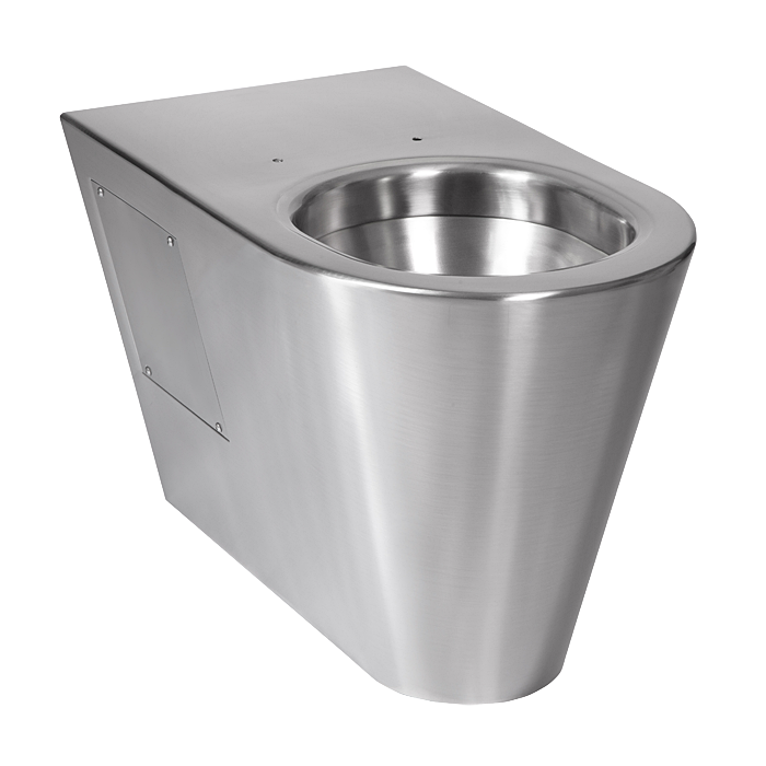 - stainless steel floor standing toilet, fixed to the wall and floor