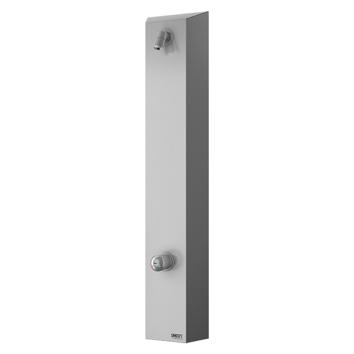Stainless steel shower panel without piezo button for coin and token shower timers with index M - for cold and hot water, temperature regulated by mixer