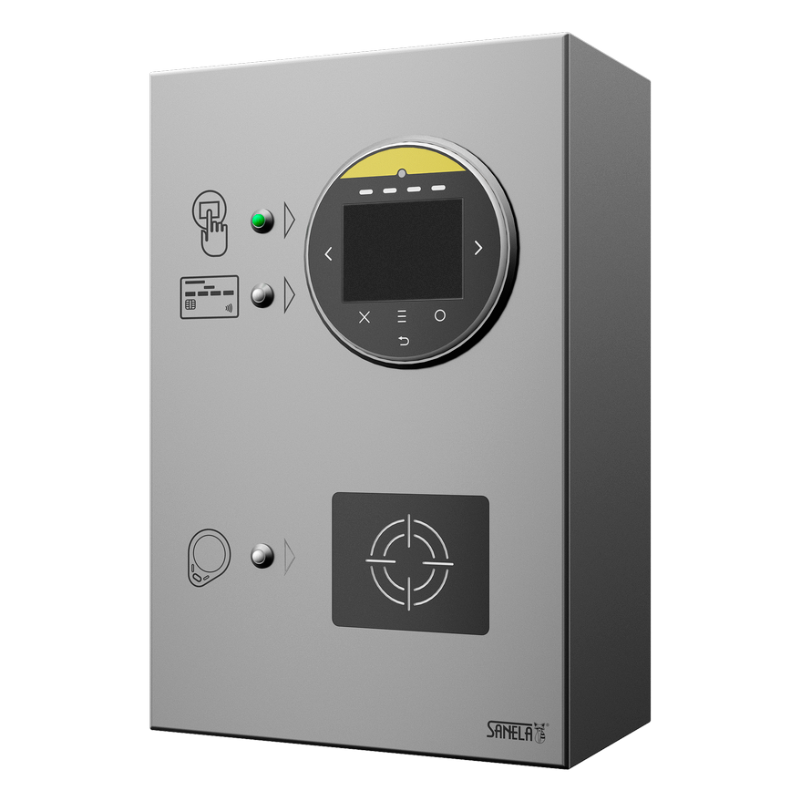 SLZA 30D - Supply No. 89307 - stainless steel payment device with electronics including Bluetooth module, credit card reader, reader for recharging RFID totens, SW recharging